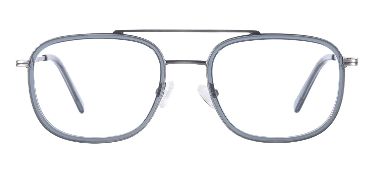 Double Bridge Square Eyeglasses Men and Women Fashion Full Rim Acetate Metal Glasses Frame For Optical Lenses Myopia Presbyopia Progressive Lens