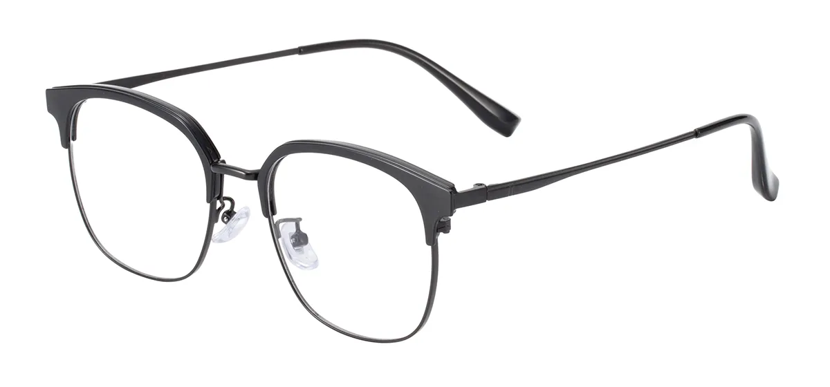 Fashion Round Browline Eyeglasses (Black)