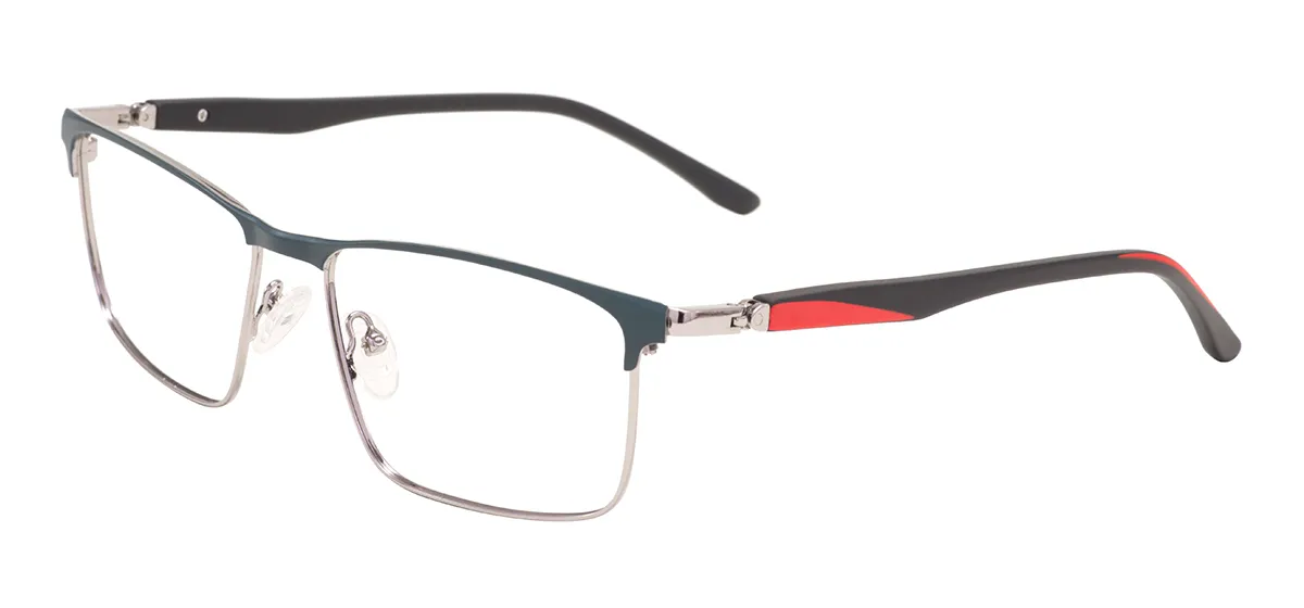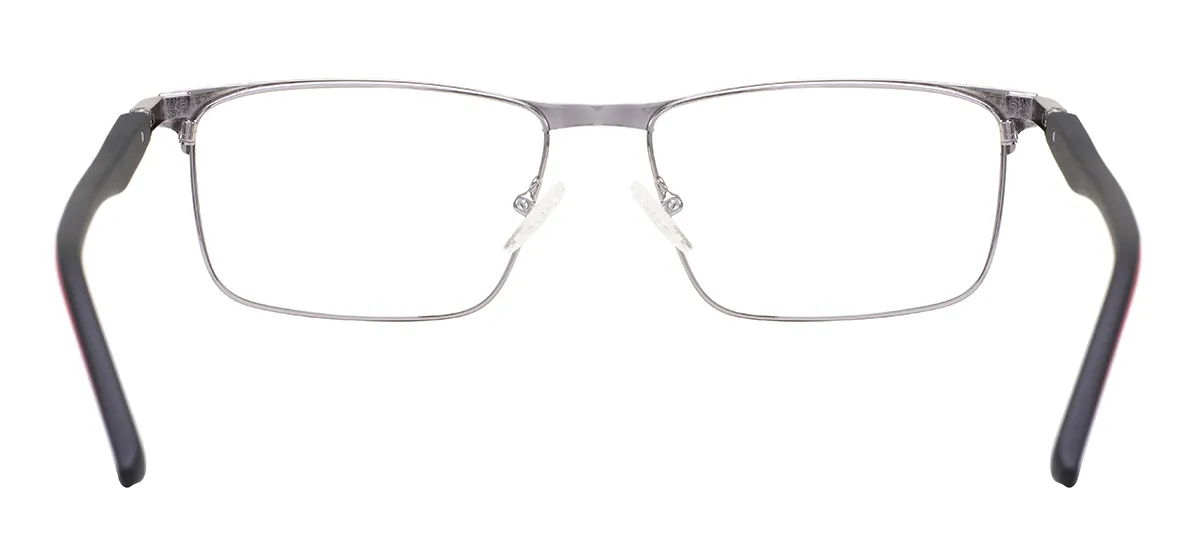 This pair of glasses is designed for adults and features a classic, solid rectangular shape within a full rim construction, offering a timeless and sophisticated look. The frame is crafted from durable stainless steel, ensuring long-lasting wear, while the temples are made from lightweight and flexible TR90 material for exceptional comfort and resilience. It is a large-sized frame with a lens width of 57mm, a bridge width of 17mm, and a temple length of 145mm, providing a generous fit with an overall frame width of 142mm and a lens height of 37mm. Functionally versatile, it is compatible with single vision, bifocal, and progressive lenses, and can also be used as a non-prescription fashion accessory. The convenient spring hinge mechanism allows for a more flexible and comfortable fit, adapting easily to different head sizes without compromising the frame's integrity.