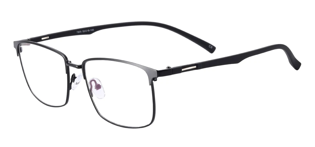 Square Male Fashion Metal Full Rim Eyeglasses Frame With TR Temple For Rx Myopia Reading Multifocal Lenses
