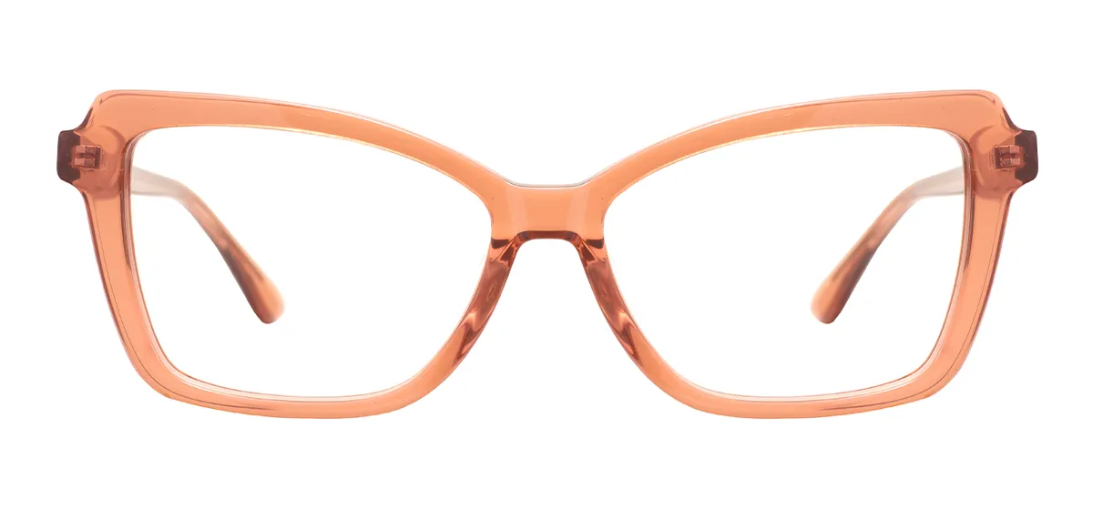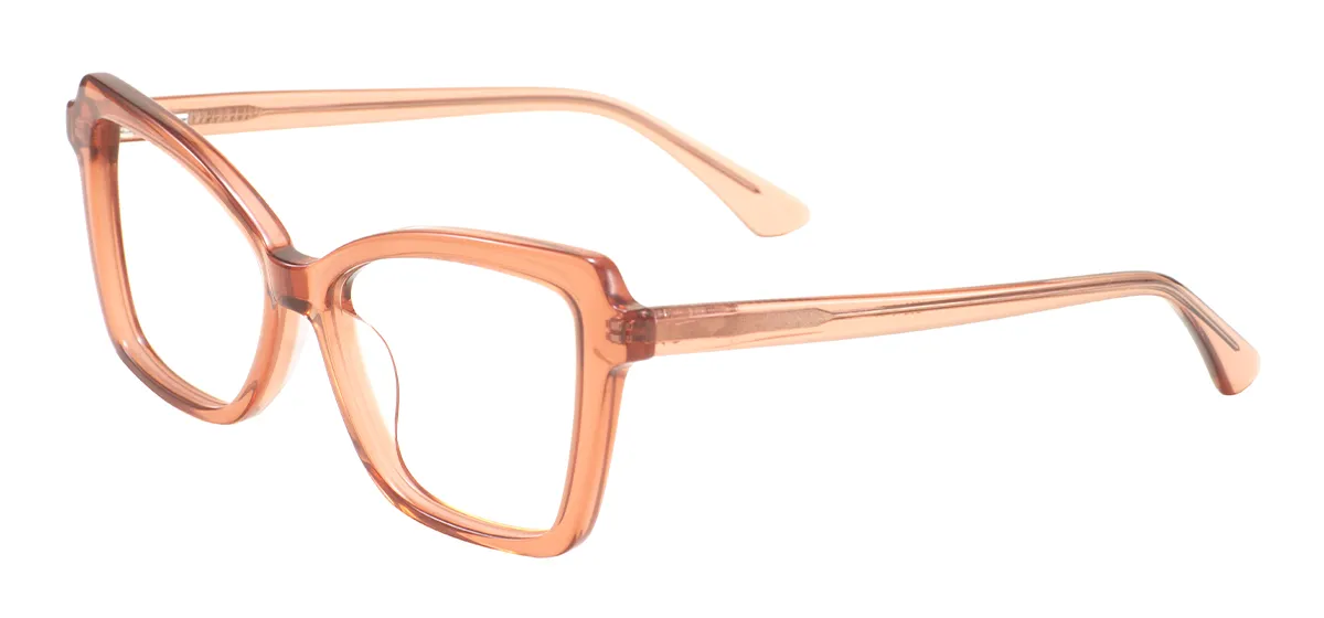 Embrace retro chic with these trendy cat-eye eyeglasses, expertly crafted from transparent acetate for a fashionable statement. Designed for women, these full-rim frames blend a distinctive cat-eye shape with subtle square influences, creating a unique silhouette that accentuates facial features. The durable construction features practical spring hinges for all-day comfort and flexibility. With precise medium measurements (53-17-140) and versatile clear styling, these spectacles perfectly accommodate Single Vision, Bifocal, or Progressive prescription lenses, making them both a stylish accessory and functional vision solution for the fashion-forward individual.