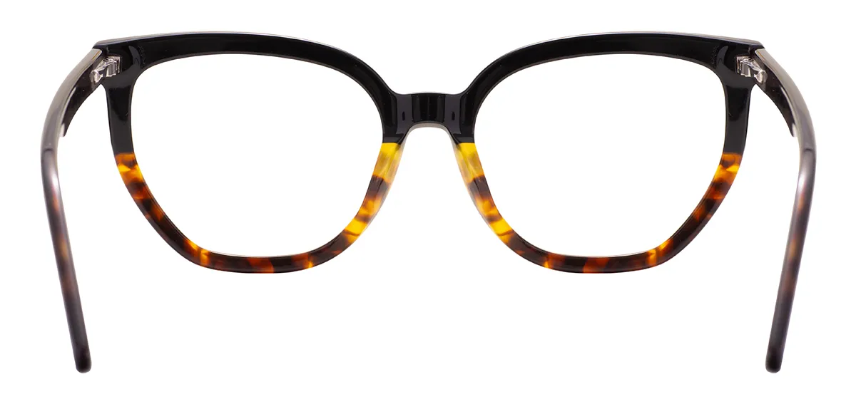 Make a striking fashion statement with these geometric spectacles, featuring a bold angular design crafted from clear acetate for a modern yet sophisticated look. The full-rim construction showcases a distinctive architectural silhouette that blends avant-garde aesthetics with feminine elegance. Precision-engineered for a comfortable medium fit, the frame's unique measurements are 53-19-145 with a 131mm width and 44mm lens height. Flexible spring hinges provide enhanced durability and a secure, adaptive fit for all-day wear. These fashionable glasses readily support Single Vision, Bifocal, and Progressive prescriptions, seamlessly merging cutting-edge design with everyday functionality. Perfect for style-conscious women seeking a distinctive appearance that combines artistic flair with practical wearability.