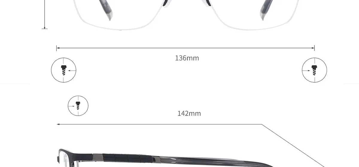 Men and Women Medium Fashion Metal Half Rim Rectangular Medium Eyeglasses Frame With Spring Hinge For Myopia Prescription Lenses