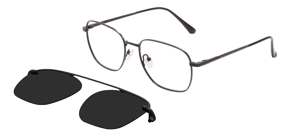 Metal Square Glasses Frames With Clip On And Spring Hinge